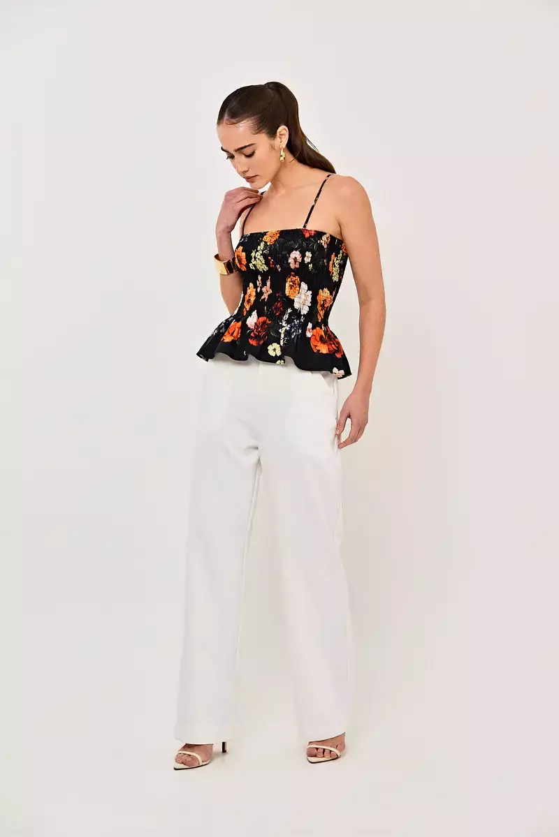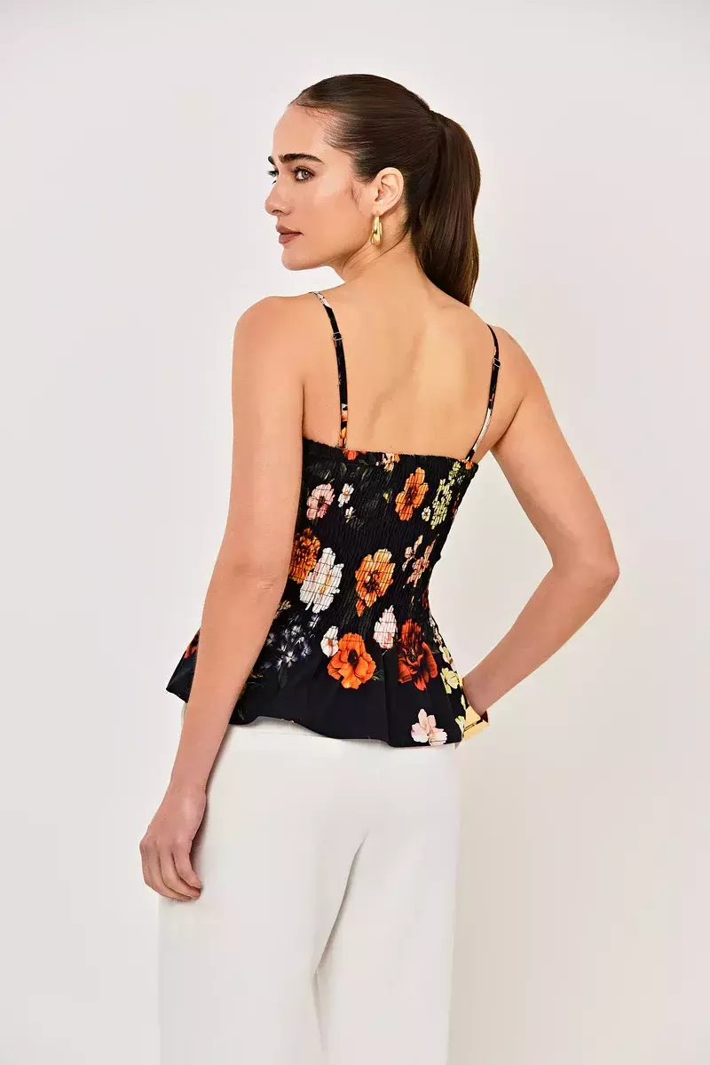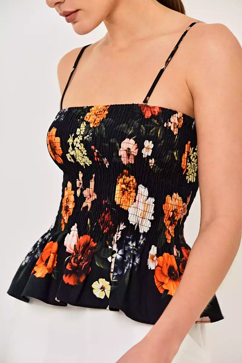 A blusa Marion é feita em tricoline com estampa floral, disponível na cor preta. Possui modelagem slim, decote quadrado, alças finas e reguláveis. Peça estruturada em lastex que agrega charme e conforto ao item.