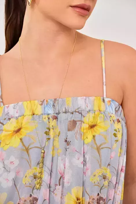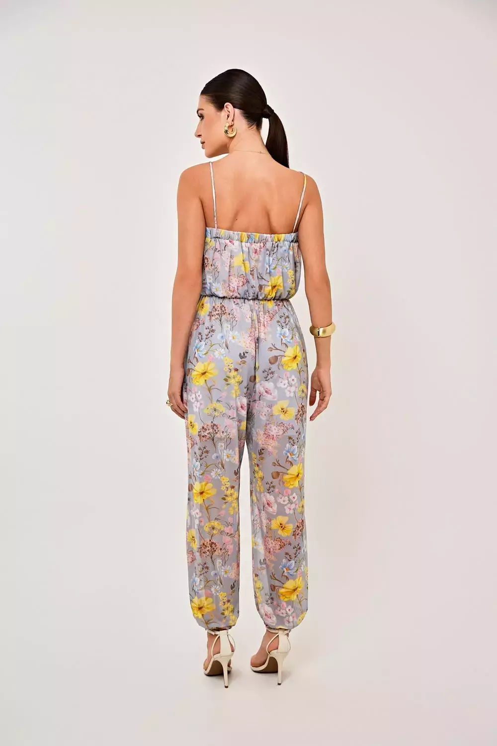 acacão Manuela confeccionado em tule com estampa floral em tons pastel. A peça possui modelagem slim, alças finas, cintura marcada e barra ajustada. Na dúvida aposte no clássico do closet feminino, o macacão é aquela peça à prova de erros e atemporal. Coleção: Saint-Tropez.