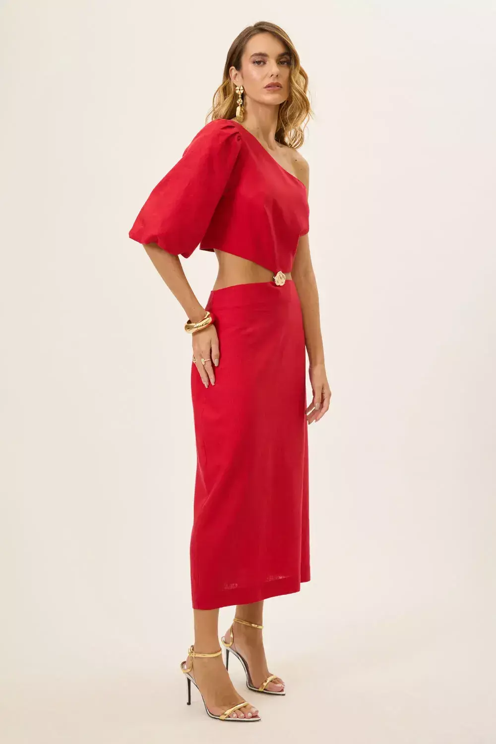 VESTIDO MIDI HIT LINHO OMBRO UNICO